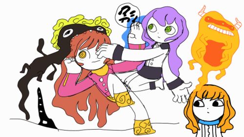 ノイズ画面全体にかけたらなんとなくいい感じになることを発見。 GIFだと感じが変わるけどこれはこれでおもしろそう。 点々部分がノイズの名残です。 実際の動画だとこれがもっときめ細かくちらつき続ける感じ。 元絵が超平面的だからテクスチャっぽく使える…